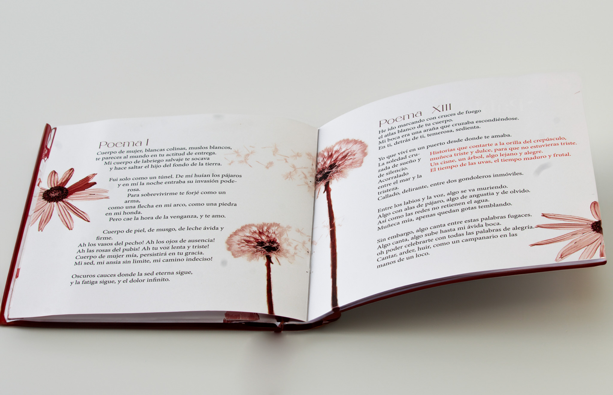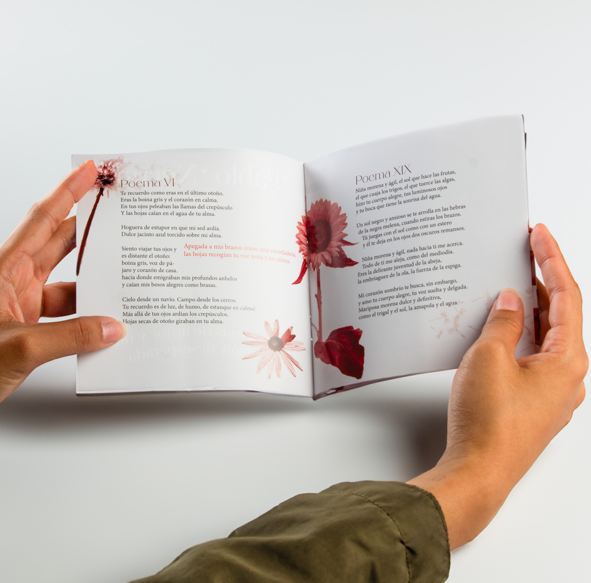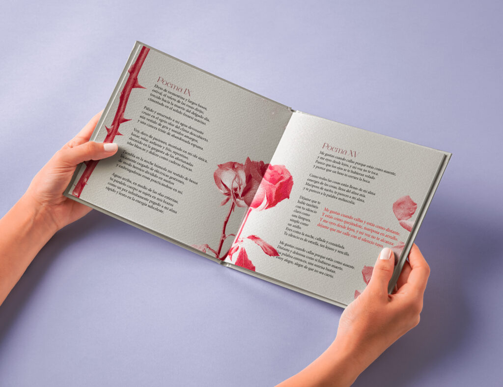 Este libro es una fusión inesperada: los versos ardientes de Pablo Neruda se encuentran con las formas caprichosas de flores en collages de tinta. Cada página es un dúo entre las palabras del poeta y los patrones florales, una colaboración entre la poesía y la naturaleza.