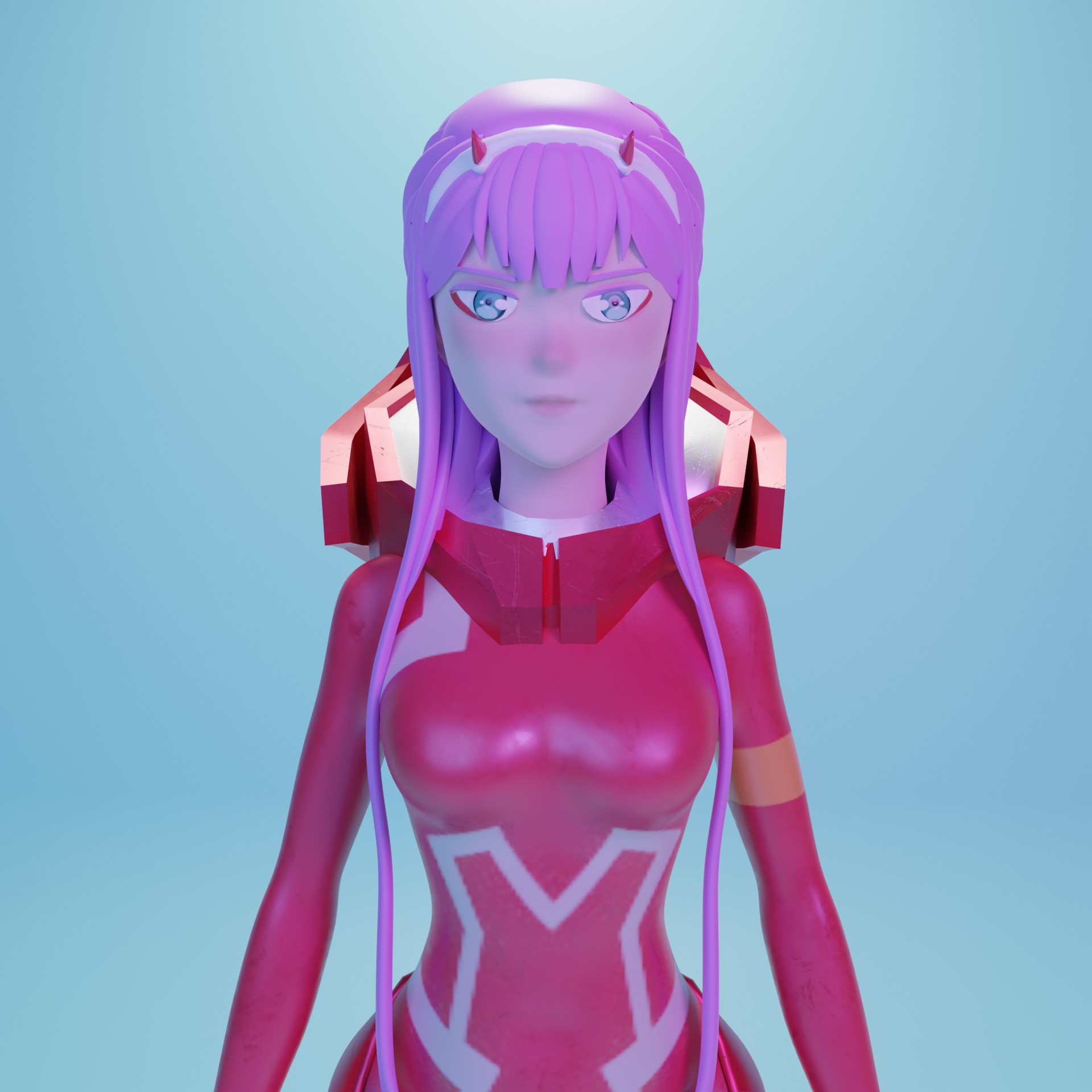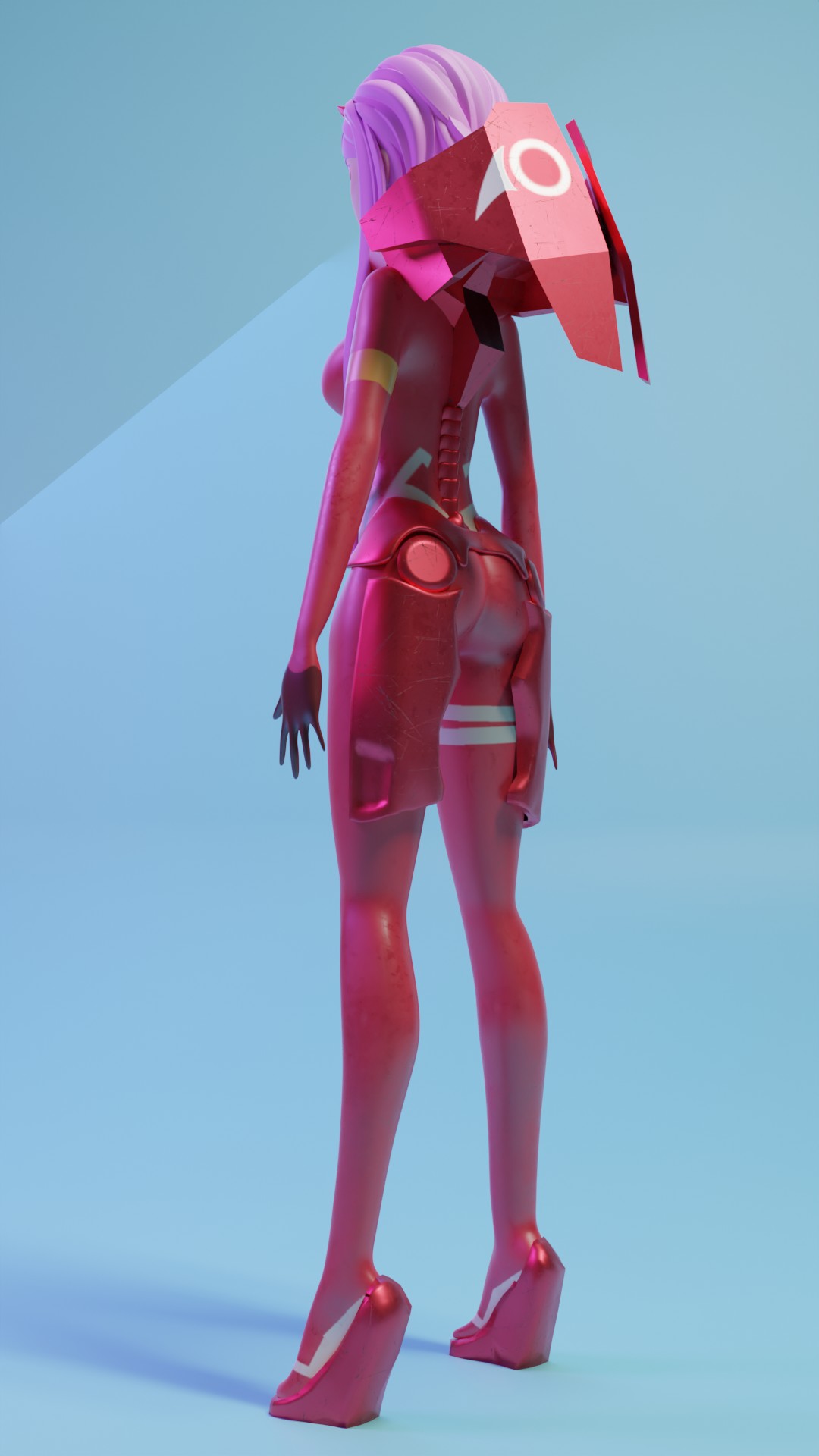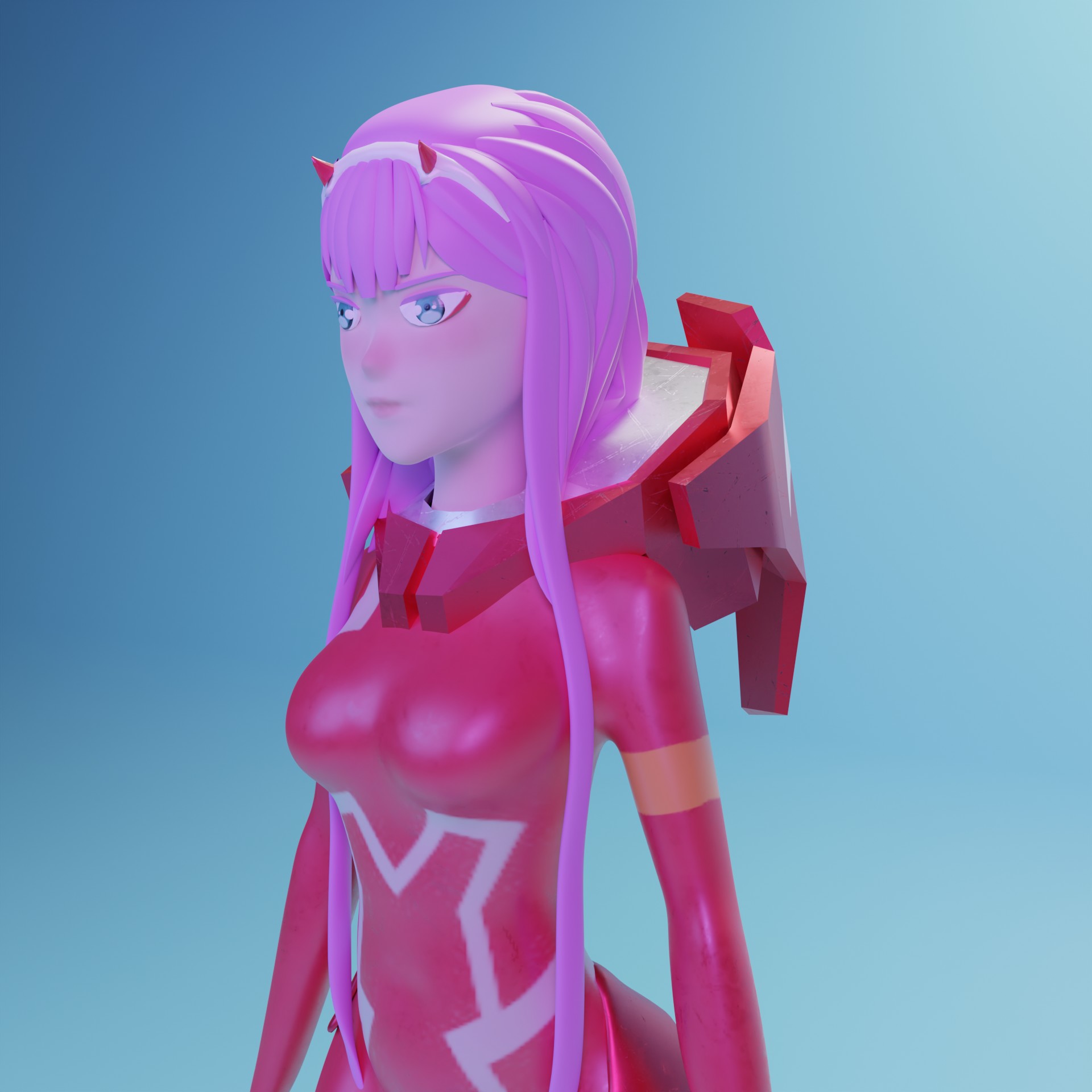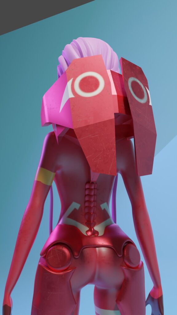 El modelado de Zero Two de Darling in the FranXX, junto con su icónica armadura, es un proceso meticuloso diseñado para reflejar su carisma y determinación. Cada detalle de la armadura, desde sus formas aerodinámicas hasta los intrincados detalles, es esculpido con precisión en modelado 3D para capturar la esencia de este personaje tan querido por los fanáticos del anime. Se utilizan texturas metálicas para transmitir una sensación de fuerza y futurismo, mientras que efectos visuales como destellos de luz destacan su naturaleza poderosa.